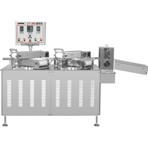 該設(shè)備是一種糖條搓紋機,搓出的糖條可生產(chǎn)各種螺紋狀花糖。該機搓出的糖條粗細均勻、紋理清晰、條紋勻稱,切出的糖條長度可以任意調(diào)整(在不停機的狀態(tài)下),從而解決了各糖果生產(chǎn)廠家生產(chǎn)各種花式的需求。
